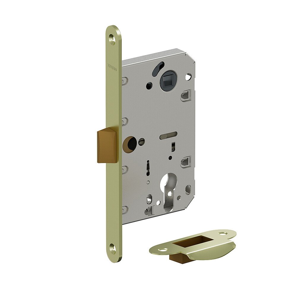Описание: Цилиндровый врезной универсальный замок из стали с язычком из ударопрочного пластика предназначен для установки на межкомнатные двери с запиранием на ключ (ключ/фиксатор).