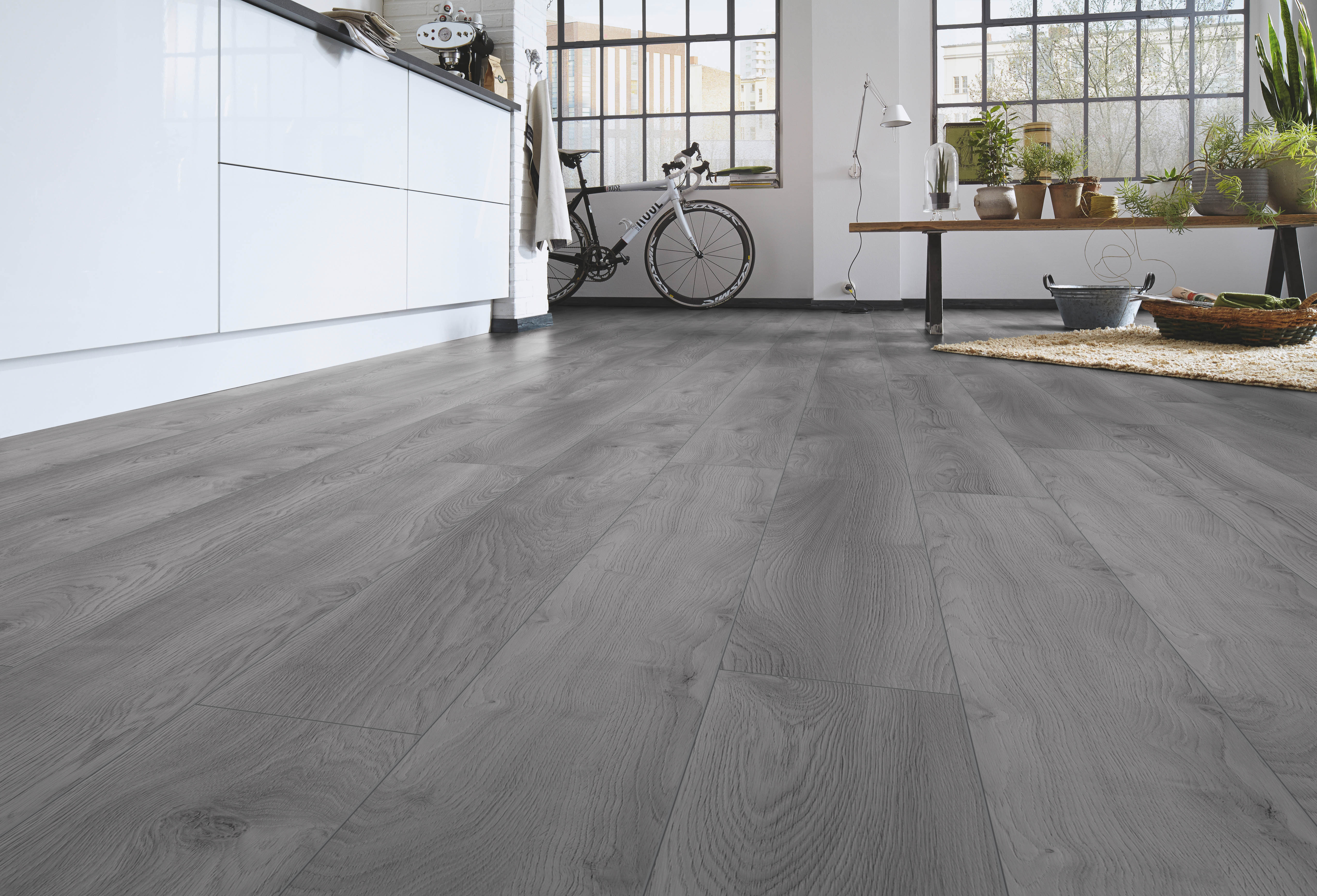 Немецкое производство и наличие сертификатов гарантируют стабильное качество. Текстура дуба не выходит из моды и легко сочетается со скандинавским и минималистичным стилями. Такой пол гармонично смотрится в кухне-гостиной, коридоре и детской, где важны практичность и спокойный фон.
